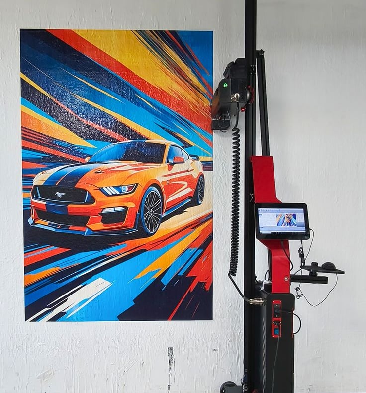 La machine peut imprimer jusqu’à 2,5 m² par heure, ce qui permet de réaliser la majorité des projets en quelques heures seulement.